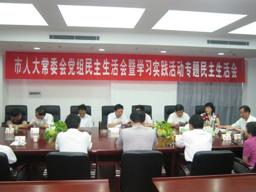 6月7日上午,市人大常委会党组以“加强领导干部党性修养、树立和弘扬良好作风” 为主题,召开专题民主生活会。市人大常委会党组书记、主任肖天连主持会议。副主任张又发、王永革、李友鸿、裴建勤、徐水花,秘书长肖月高出席会议。市人大常委会副巡视员江厚全、老干部、各工委负责人列席会议。