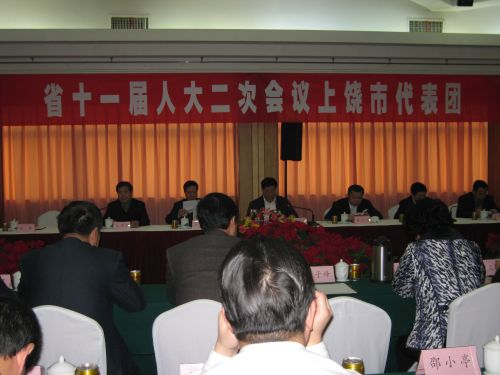 市委书记蔡晓明主持会议。会议推选蔡晓明为上饶代表团团长,推选肖天连、董仚生为上饶代表团副团长。会议审议了大会主席团和秘书长名单(草案),审议了大会议程(草案),通报了有关大会的情况。