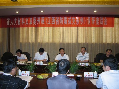 9月11日,省人大常委会委员、教科文卫委主任严平,省人大常委会委员、教科文卫委副主任李国强,省地震局局长王建荣一行来饶,就我市贯彻《江西省防震减灾条例》情况进行调研。市人大常委会副主任周华北、副市长胡汉平陪同调研。