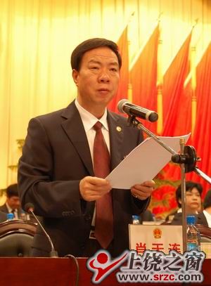 新 当选的市长董仚生发表热情洋溢的讲话