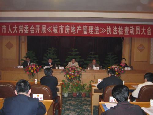4月11日,市人大常委会召开《中华人民共和国城市房地产管理法》执法检查动员大会。市人大常委会主任肖天连主持会议,市委常委、常务副市长朱荣辉出席会议并讲话。市人大常委会副主任张又发、徐水花,秘书长肖月高出席。