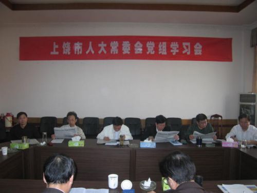 10月26日上午,市人大常委会党组举行学习会,进一步认真学习党的十七大精神。市人大常委会主任肖天连主持会议并讲话。市人大常委会副主任张又发、王永革、周华北、李友鸿、裴建勤,副巡视员江厚全,秘书长肖月高及市人大常委会各专工委、办公室负责人参加了会议。