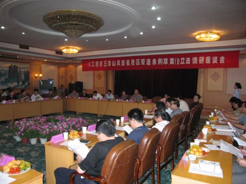 座谈会上,三清山管委会、文化、林业、发改委、农业局等相关部门分别就三清山的行政管理体制, 行政执法,一、二、三级保护区行为,国家级省级重点保护野生动植物、水土保持措施、对文物造成破坏追究法律责任等提出了建议。