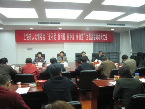 3月1日全市“查不足、找问题、解矛盾、保稳定”主题月活动动员大会结束后,当天下午,市人大常委会召开了主题月活动动员会,组织机关全体干部职工学习市委、市政府下发的《关于在全市开展“查不足、找问题、解矛盾、保稳定”主题月活动方案》,传达全市主题月活动动员大会精神,并就如何开展主题月活动进行了部署和安排。市人大常委会主任肖天连、副主任裴建勤、徐水花、秘书长肖月高参加了动员会。