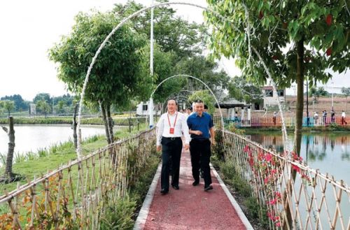 2022年5月中旬,四川省人大常委会党组书记、副主任王宁(左一)带队调研成都市简阳市平武镇尤安村乡村振兴工作推进情况。(四川省人大常委会供图)
