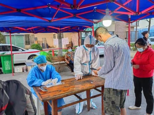 公司员工龙超证协助市民做好核酸登记工作