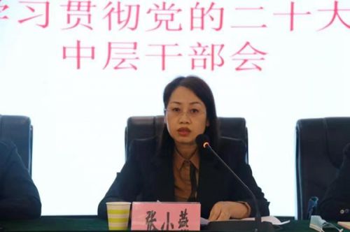 10月28日,沿河土家族自治县人民医院召开中层干部会议,院党委书记张小燕传达学习贯彻党的二十大和党的二十届一中全会精神。在院党政领导班子,全体中层干部,各党支部书记参加会议。