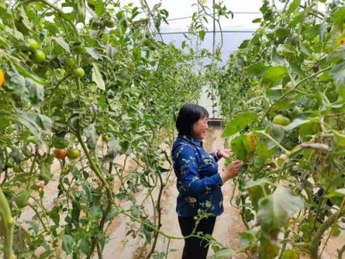 在定西市安定区符川春香农副农资合作社,党春香正在查看西红柿长势。