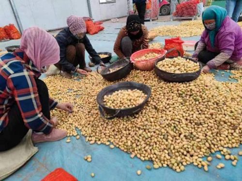 在甘肃省定西市安定区香泉镇陈家屲村的定西马铃薯研究所内,几名农村妇女正在麻利地挑选着马铃薯原原种。马大姐说,她们都是陈家屲村周边的农民,“挑选原原种一天能挣80元左右,一年大部分时候都有活儿干,还不影响自家种地”。