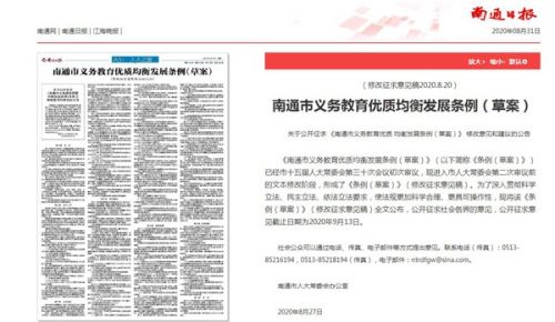 南通市地方性民生立法草案通过媒体向全社会公开征集修改意见。(南通市人大常委会供图)