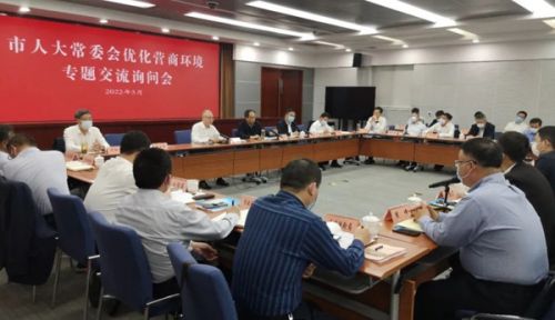2022年5月,南通市人大常委会开展优化营商环境专题交流询问会。(南通市人大常委会供图)