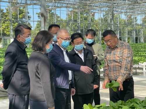 南通市人大常委会部分组成人员在设施农业基地调研蔬菜生产流通情况。(南通市人大常委会供图)