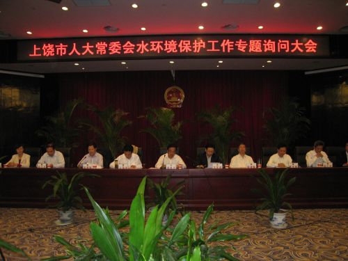 会上,10名市人大常委会委员、市人大代表就我巿水环境保护、饮用水源保护、污水处理厂运营、工业园区污水处理等15个市民群众关心的热点问题开展询问。市政府相关部门主要负责人对委员、代表提出的询问问题逐一回答。会议内容充实,有问有答,始终洋溢着团结、民主、求实、鼓劲、热烈的气氛。 尧希平在讲话中指出,保护水环境是建设宜居宜业宜游上饶的内在要求,水环境保护事关发展,事关民生,事关形象。市人大常委会开展专题询问是对我巿水环境保护的有益促进,通过询问进一步掌握了我市水环境保护工作的实际情况,进一步理清了我市加强水环境保护的工作思路,进一步密切了人大、政府与人民群众的血肉联系。针对当前我巿水环境保护工作面临的问题,尧希平强调,要真抓实干,进一步做好上饶水环境保护工作。要注重长远,坚持标本兼治;要注重协调,坚持系统联动;要注重实效,坚持跟踪监督。各级各部门一定要牢固树立水是生命之源、生产之要、生活之基、生态之魂的理念,以科学发展观为指导,加强水环境保护工作,使我市的水环境保护工作再上一个新的台阶,让上饶的水更清、天更蓝 。 汪东进指出,保护环境是我国基本国策,改善环境是政府的重要职责,依法监管是各职能部门的神圣使命。他要求,各级政府及有关部门要高度重视人大常委会和人大代表所提出的意见建议,切实加强领导,认真履行环保职责,做好水环境保护工作。严格环境准入,促进发展方式转变和经济结构调整,认真落实规划环评条例,深化建设项目环评,强化环保验收管理。强化监管措施,抓好流域区域行业污染防治。抓好重点流域水污染治理环保基础设施建设,抓好冶炼、造纸、印染、化工等行业的污染防治。加大宣传力度,增强全社会的环境保护意识,努力调动各方面的力量,深化重点流域环境综合治理,切实落实各项政策措施,确保水环境保护目标如期实现,切实保护好全巿水资源环境。 参加会议的还有市人大常委会副秘书长及办公厅、各工委负责同志,市政府副秘书长及市政府有关部门主要负责同志,各县(市、区)人大常委会分管副主任、政府分管副县(市、区)长,部分市人大代表,市人大常委会部分专家咨询团成员。