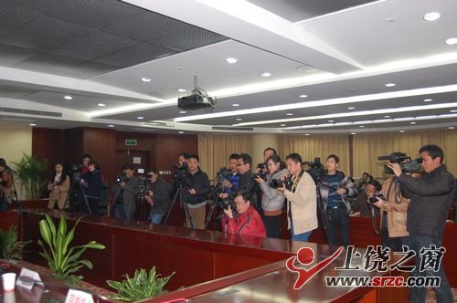 2月14日晚,2012年上饶市“两会”首场新闻发布会在市行政中心举行,来自全市及省驻饶新闻媒体参加发布会。三清山风景区党委副书记、管委会主任杨沙鸥 ,广丰县县长邵小亭,玉山县县长饶清华,横峰县县长张义科,弋阳县县长谢柏清,余干县县长胡伟,鄱阳县县长张新华等以市第三次党代会提出的把上饶就建设成宜居宜业宜游现代化区域中心城市为目标,就各县的未来发展规划情况作了介绍,并回答记者提问。发布会由宣传部副部长范剑华主持。