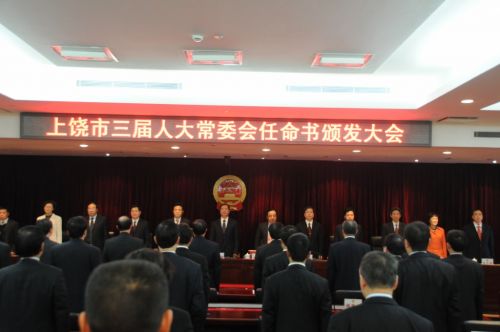 潘东军在讲话中代表市政府向市人大常委会给予政府工作的关心和支持表示感谢,向新任命的市政府组成部门主要负责人表示祝贺。他要求,新任的市政府组成部门主要负责人要强化责任意识,在推进大发展中奋发有为,以只争朝夕的紧迫感和使命如山的责任感,踏踏实实地做好每一项工作;要强化宗旨意识,在发展大民生中积极作为,真正做到权为民所用、情为民所系、利为民所谋,努力做人民满意的公仆;要强化法治意识,在依法行政中不断创优发展环境,保证人民赋予的权力在法治轨道上高效运行,为上饶建设宜居宜业宜游的现代化区域中心城市,打造更优更好的发展环境;要强化监督意识,在自觉接受监督中推进阳光行政,切实保障人民群众的知情权、参与权、表达权和监督权,赢得人民群众的充分信任、充分理解和广泛支持;要强化学习意识,在转化学习成果中增强能力,使思维方式、思想观念、工作思路、工作方法跟上时代发展的步伐,适应新形势、新任务的需要;要强化廉政意识,在自律自警中干净干事,认真地抓好所在部门的廉政工作,使各自所属部门、单位的干部职工成为一支政治强、业务精、作风正、形象好的高素质队伍,共同塑造清廉的政府形象。