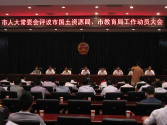 记者杨津玉报道:7月27日,市人大常委会评议市国土资源局、市教育局工作动员大会召开。市人大常委会主任肖天连出席并讲话。副市长张鸿星代表市政府就如何做好评议工作作了讲话。市人大常委会副主任王永革、李友鸿、裴建勤、徐水花,秘书长肖月高出席动员大会。市人大常委会副主任周华北主持动员大会。