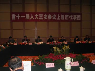 1月25日上午,出席省十一届人大三次会议的上饶市代表团,在江西饭店举行全体会议。会议推选市委书记蔡晓明为上饶代表团团长,推选市人大常委会主任肖天连、市长董仚生为上饶代表团副团长。肖天连主持。会议审议了大会主席团和秘书长名单(草案),审议了大会议程(草案),通报了有关大会的情况。
